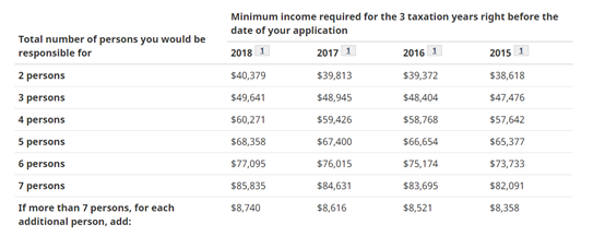 移民局要求担保人在过去三个报税年满足担保要求最低收入,这个收入是根据家庭成员数变化的哦!例如:一家三口需要担保其中一方父母,则家庭人数即为5人。