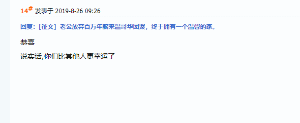 有一个真实的例子,最近在本地华人论坛上一经发布,引发了巨大的反响:“老公放弃了国内百万年薪,选择来加拿大过普通生活,只为一个温暖的家”