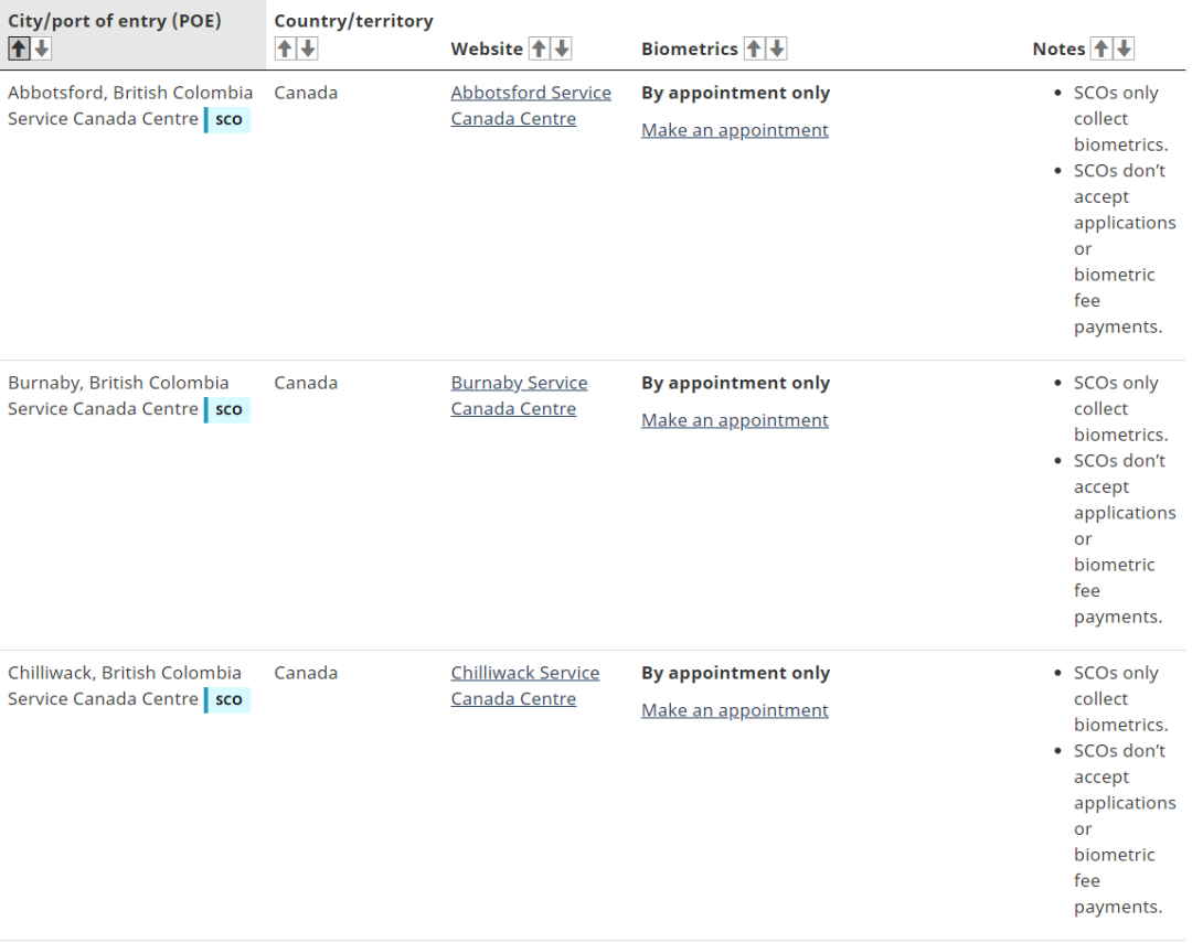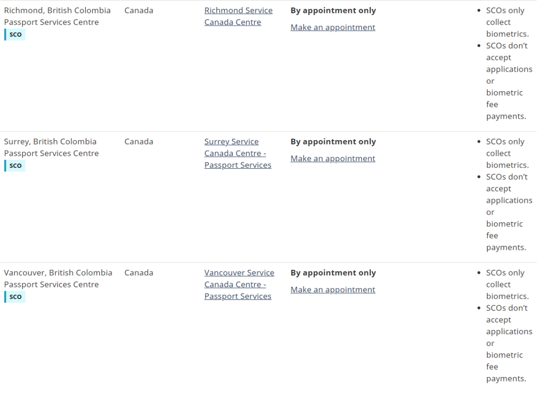 最后是前往生物采集中心,采取指纹。但注意,在录指纹之前,一定要先预约!如BC省的采集中心,都只接受预约!