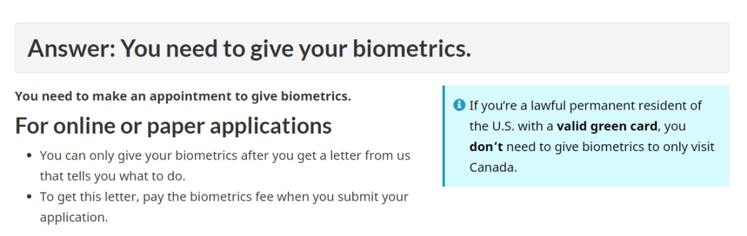 已经为申请永久居民提供了生物识别信息,该申请尚在审理过程中时申请短期访问签证;